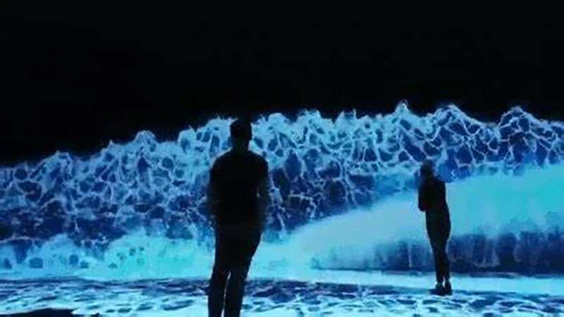当你的声音感观被激活时,你接下来将看到6米高的墙壁和地板上的海浪冲击波的投影画面。
