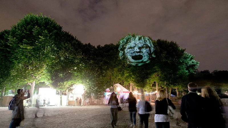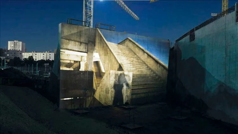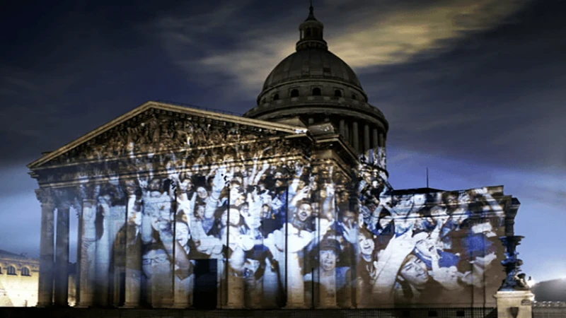 在法国的塞纳河摇滚节十周年纪念日,他将公众的各种照片投影到具有象征意义的建筑遗存上,创造了一个超现实的维度,在这个维度上,我们历史的人类轮廓显得栩栩如生。