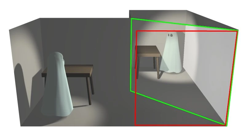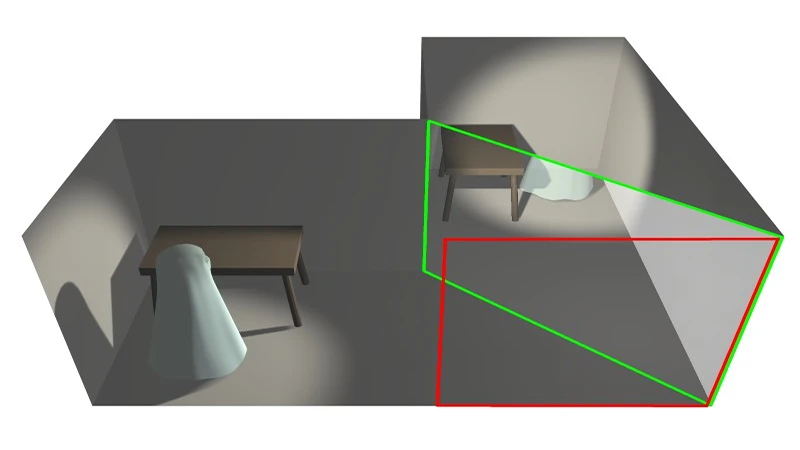 隐藏的房间可以是与主房间相同的镜像,以便其反射的图像与主房间的布局完全匹配;这种方法在使对象看起来出现或消失时很有用。另一个方式是:隐藏的房间本身可能被漆成黑色,里面只有浅色的物体。在这种情况下,当灯光投射到房间上时,只有必要的道具强烈反射该灯光,因此在观众的视野里显示为幽灵般的半透明图像,这可用于使对象看起来在像是再空中漂浮。