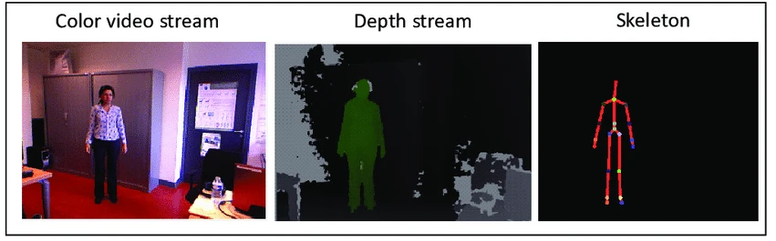最后系统通过对合成和真实深度数据的广泛训练来估计身体关节的三维位置,骨骼图是用在实现体感互动的关键。