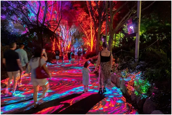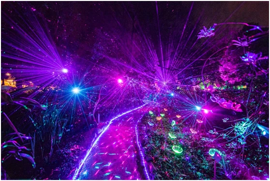 像素映射LED、激光、全息投影、交互投影映射技术在夜游项目“魔法花园”中的运用
