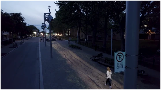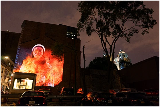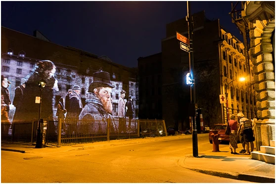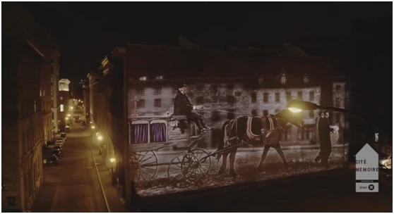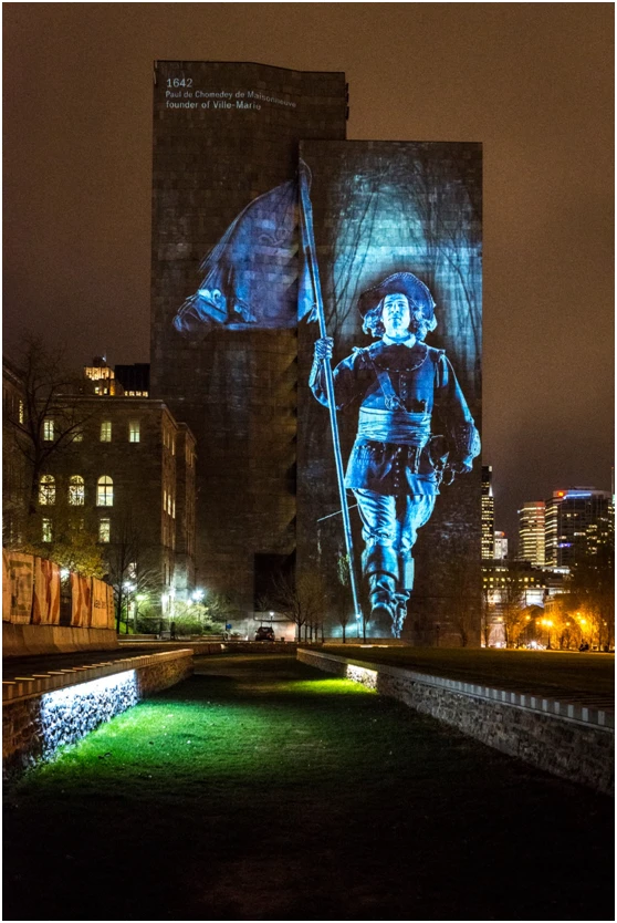 在四年里,老蒙特利尔的树木、建筑和鹅卵石街道将被一系列城市历史相关的投影影像照亮,这些影像与历史建筑相关联,每个装置的影像与历史建筑的结合颇具创意,游客可以发现、并开启若干的建筑投影装置,并像景点导览系统那样通过文字、音频等资讯感知城市的历史。