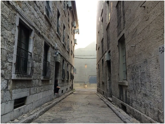 “弃儿码头”位于圣保罗街附近的一条狭窄小巷中,是对照顾蒙特利尔众多孤儿的灰修女们的致敬。地上出现了一系列襁褓中的婴儿,而修女们则走出小巷一侧的阴影,靠着远处的墙壁。也许拍摄最多的画面是“蒙特利尔的面孔”:一系列背诵诗歌的面孔,展示在老港口的树上。