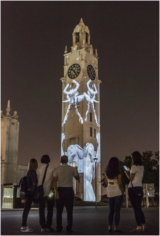 这些投影由各处隐藏在墙体、灯柱中的高亮度投影机呈现