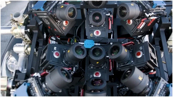屏幕的分辨率比任何一台相机都要高。创意团队已经建立了自定义的相机阵列,并正在应用平铺、放大和缝合等技术,为画布提供16K的分辨率。这个相机阵列系统名为“大天空”(Big Sky),采用Blackmagic的URSA Mini Pro 12K相机,包括8K功能的RED,经过大量的研发,被组合成阵列,用于不同场景的拍摄。