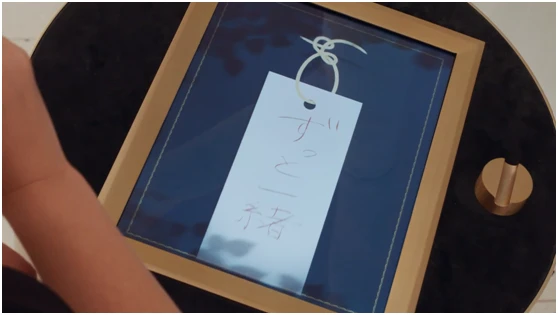 在二楼,新人将在白色的树木中发现我们的新娘创意,灵感来自日本的传统婚礼。在婚礼期间,新人会在寺庙内的树枝上挂上一个愿望。在银座精品店,这些树雕塑是对桦树的微妙诠释。透明材质,表面饰以蕾丝,让人想起婚纱。这种对细节的关注真的很有诗意。为了完成这些仪式,我们开发了一种名为“许愿树”的互动体验,情侣们可以在数字写字板上写下他们的愿望。客人们在屏幕上刚刚写下的祝福语上方做一个“喜结良缘”的手势来完成这项活动。然后,愿望从数字键盘传递到位于写字台附近的树展览上的数字编钟。一种很好的互动方式!