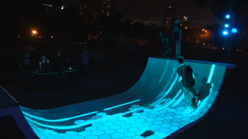 互动设计公司ENESS则着手建造了一个互动投影地图滑板坡道来纪念影片的首映式。这个以TRON为灵感的交互式滑板坡道位于墨尔本的IMAX剧院,在当时,这个坡道的带来的互动视觉效果是很壮观的。ENESS宣称,这是世界上首个极限3D投影。这个装置在现在看来比较似乎显得比较平淡了,但在当时,是很创新很新潮的。
