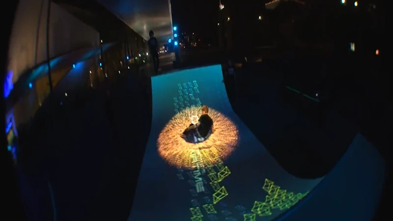 Light Session™滑板坡道为每个滑板爱好者装备了一个iPod,以及定制的APP。结合追踪摄像机和红外标记点,通过定位系统,mapping在坡道上的图像不仅可以追踪滑板爱好者的位置,并且会在滑板腾空或着陆时,触发mapping画面的变化。
